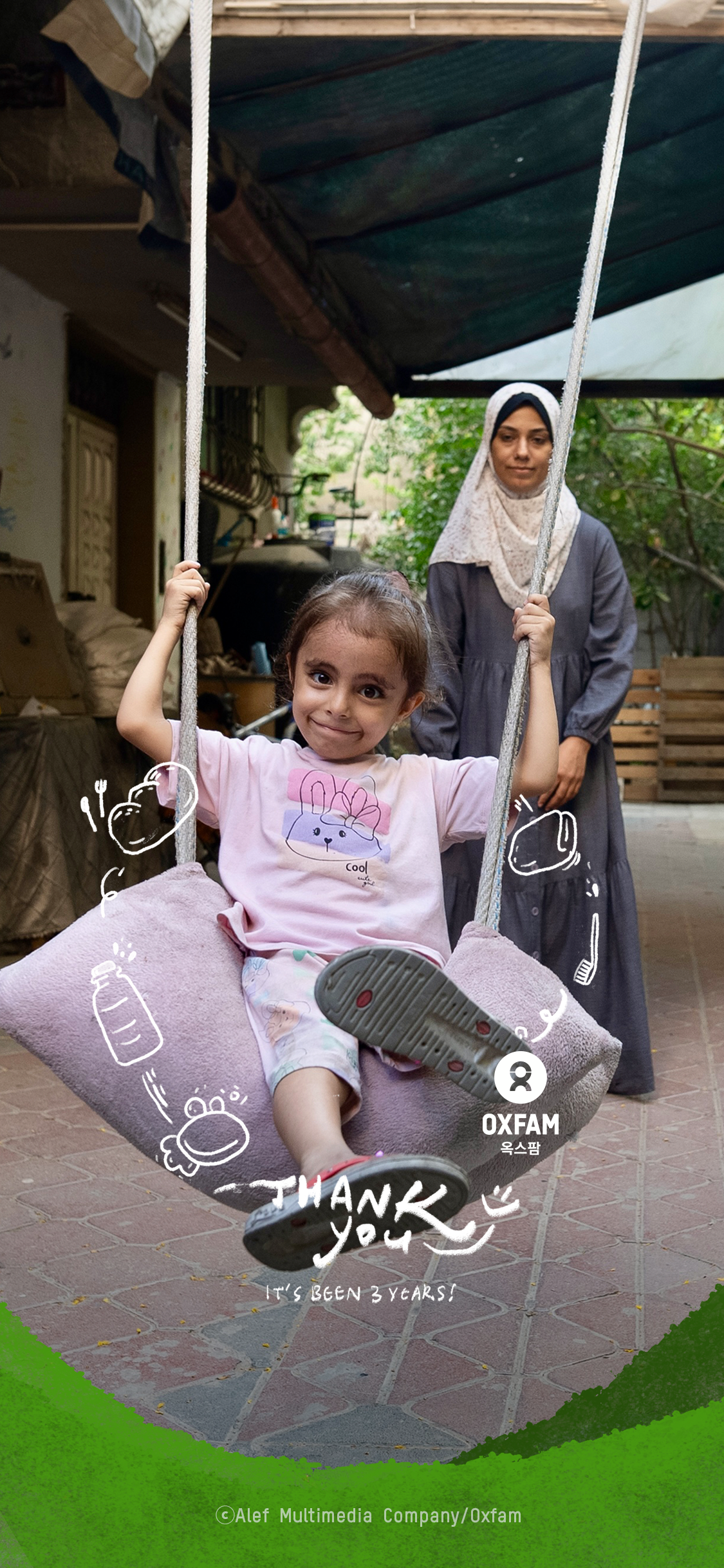 가자지구 전쟁으로 전체 농경지의 70%가 파괴되어 심각한 식량난이 이어지고 있습니다. 세 아이의 엄마 두아Duaa 와 가족들 역시 굶주림에 시달리고 있었습니다. 특히, 아이들은 영양실조로 체중이 줄고 건강이 악화되었습니다. 옥스팜은 두아의 가족처럼 식량난에 처한 가자지구 주민들에게 긴급 식량을 지원하며, 주민들의 생존과 건강을 돕고 있습니다.