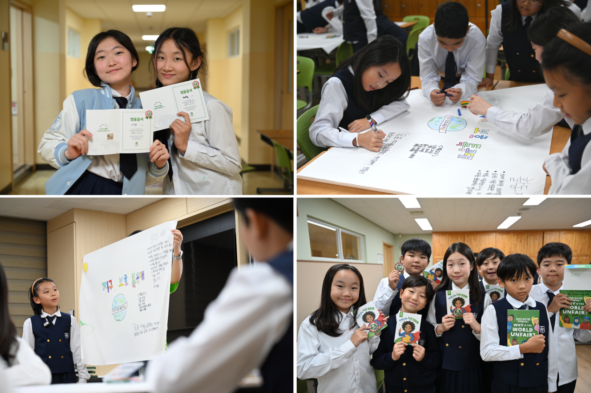 지난 10월 숭의초등학교에서는 특별한 교육이 진행되었습니다. 기후 재난으로 집을 떠나야 하는 사람들이 얼마나 많은지, 재난 현장에서 깨끗한 물이 얼마나 절실한지, 구호물품이 생명을 지키는 데 어떤 역할을 하는지 등 기후위기에 대한 궁금증을 알아보는 시간을 가졌는데요. 아이들은 “우리 동네가 물에 잠기면 어떤 일이 벌어질까?”를 주제로 열띤 토론을 하고, 기후위기 문제를 해결하기 위해 가상의 단체를 설립하고 활동 계획을 세우며 실천을 다짐해 보기도 했습니다.
