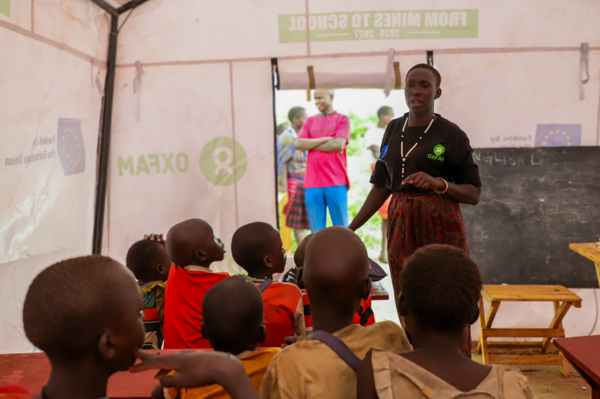 이러한 어려움 속에서도 교실은 희망으로 가득 차 있습니다. 나로르Naror 이동식 학교의 유일한 7학년 학생인 22살 뎅겔 모세Dengel Moses는 홀로 된 어머니를 부양하기 위해 학업을 포기하고 농사일과 잡일을 전전해야 했던 뎅겔은 옥스팜 교육 프로그램을 통해 다시 교실로 돌아왔습니다. 수업 시간을 놓치지 않고 눈을 반짝이며 참여하는 뎅겔은 학교를 통해 새로운 미래를 꿈꾸게 되었습니다.