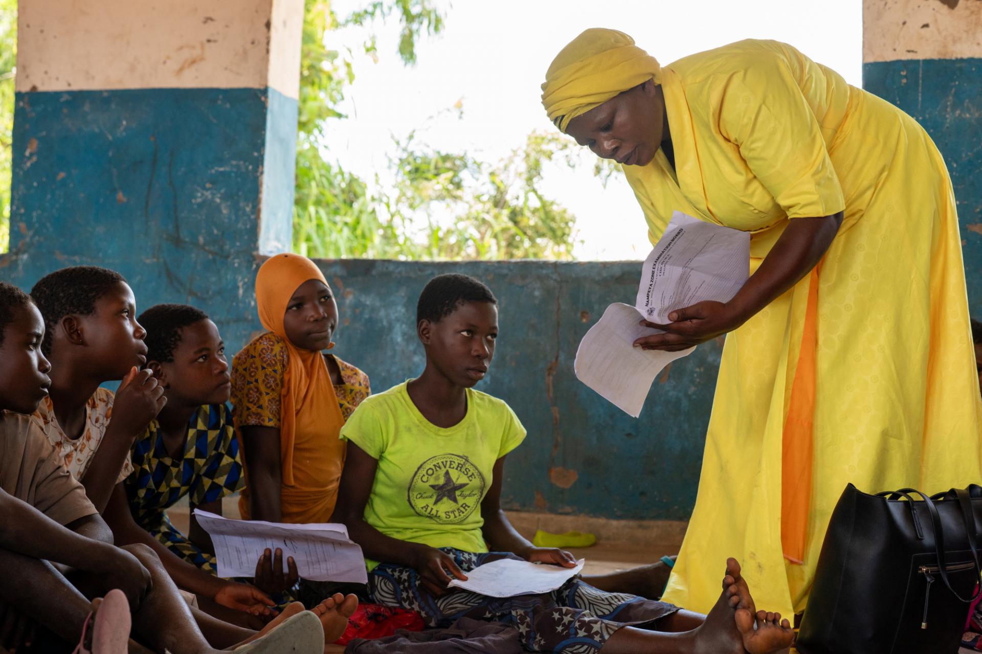 초등학교를 방문해 여자아이들과 교류 중인 에스더 ⓒ Tavwana Chirwa/Oxfam